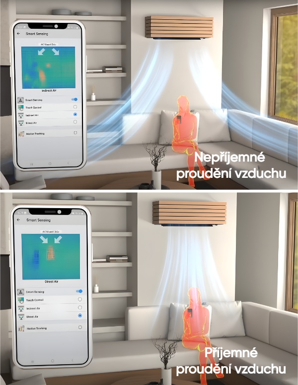 Rozpozná polohu osob a zdrojů tepla, resp. pohyb a podle toho ovládá provoz a výdech vzduchu. A díky tomu si můžete užít příjemný komfort.