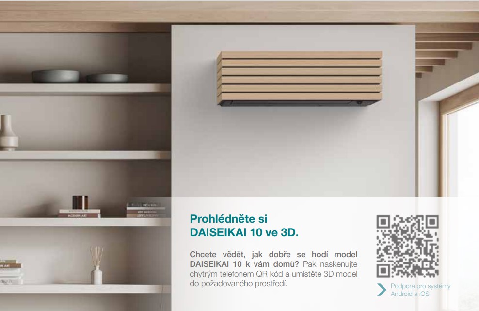 Daiseikai 10 představuje synonymum pro inovativní design, vysokou účinnost a maximální pohodlí. Nabízí mnoho úžasných funkcí, takže by byla škoda používat ji pouze pro chlazení a vytápění. Vzduch v místnosti je cirkulován a čištěn na nejvyšší úrovni, zatímco inteligentní senzory detekují pohyb osob a regulují klimatizaci podle individuálních kritérií komfortu nebo úspornosti.